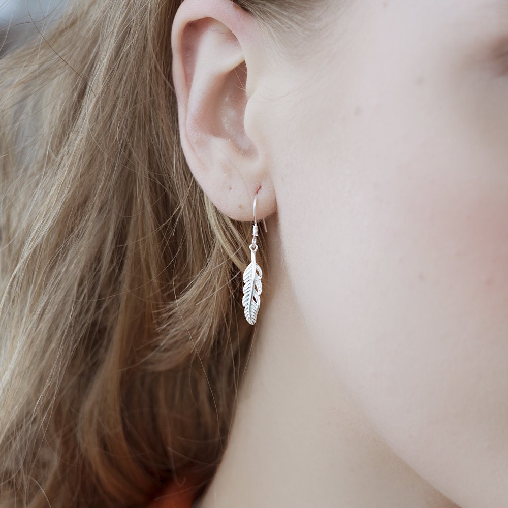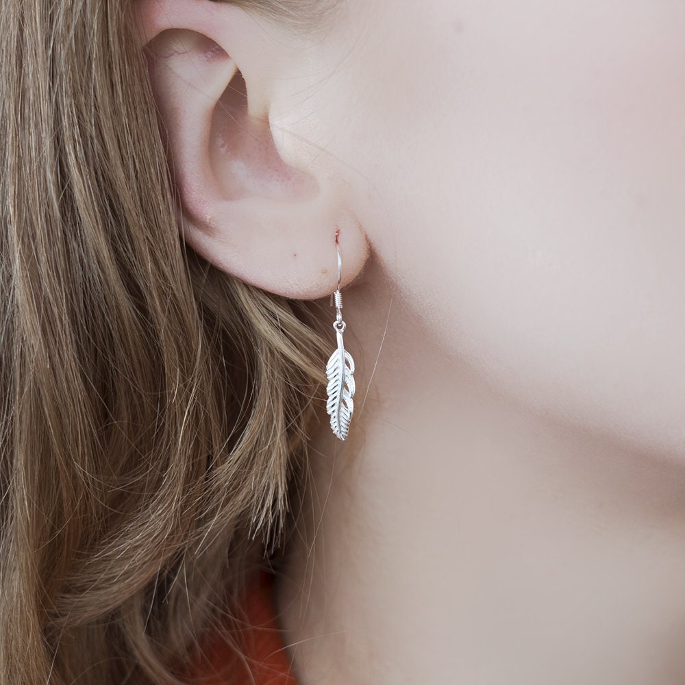 These sterling silver floating feather drop earrings offer a graceful, airy look with a touch of elegance. Featuring intricately designed feathers that seem to gently sway with movement, they add a sophisticated and ethereal vibe to any outfit. Perfect for adding a hint of natural beauty and charm to your style!