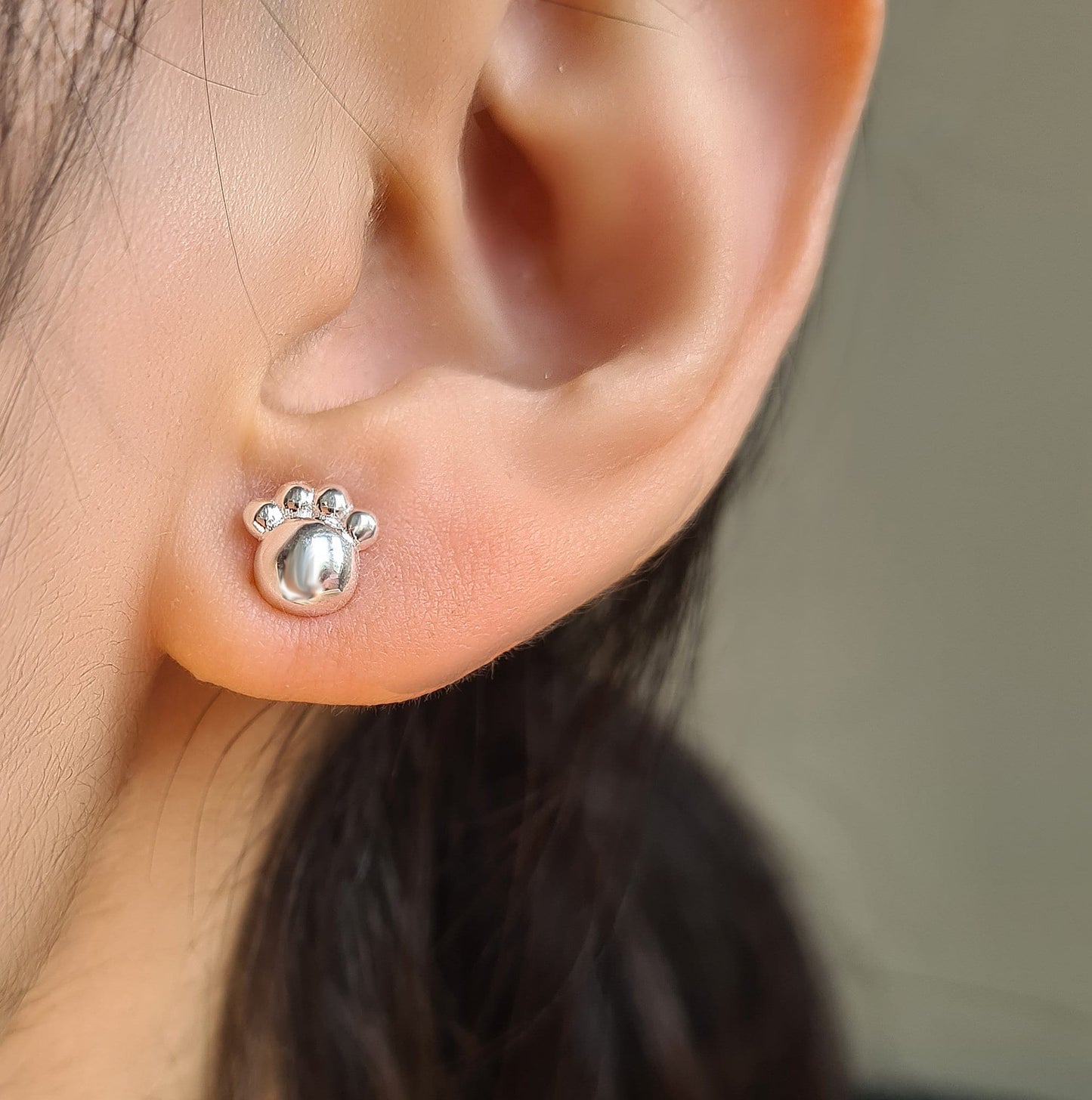 Cat/Dog 3D Pawprint Sterling Silver Stud Earrings