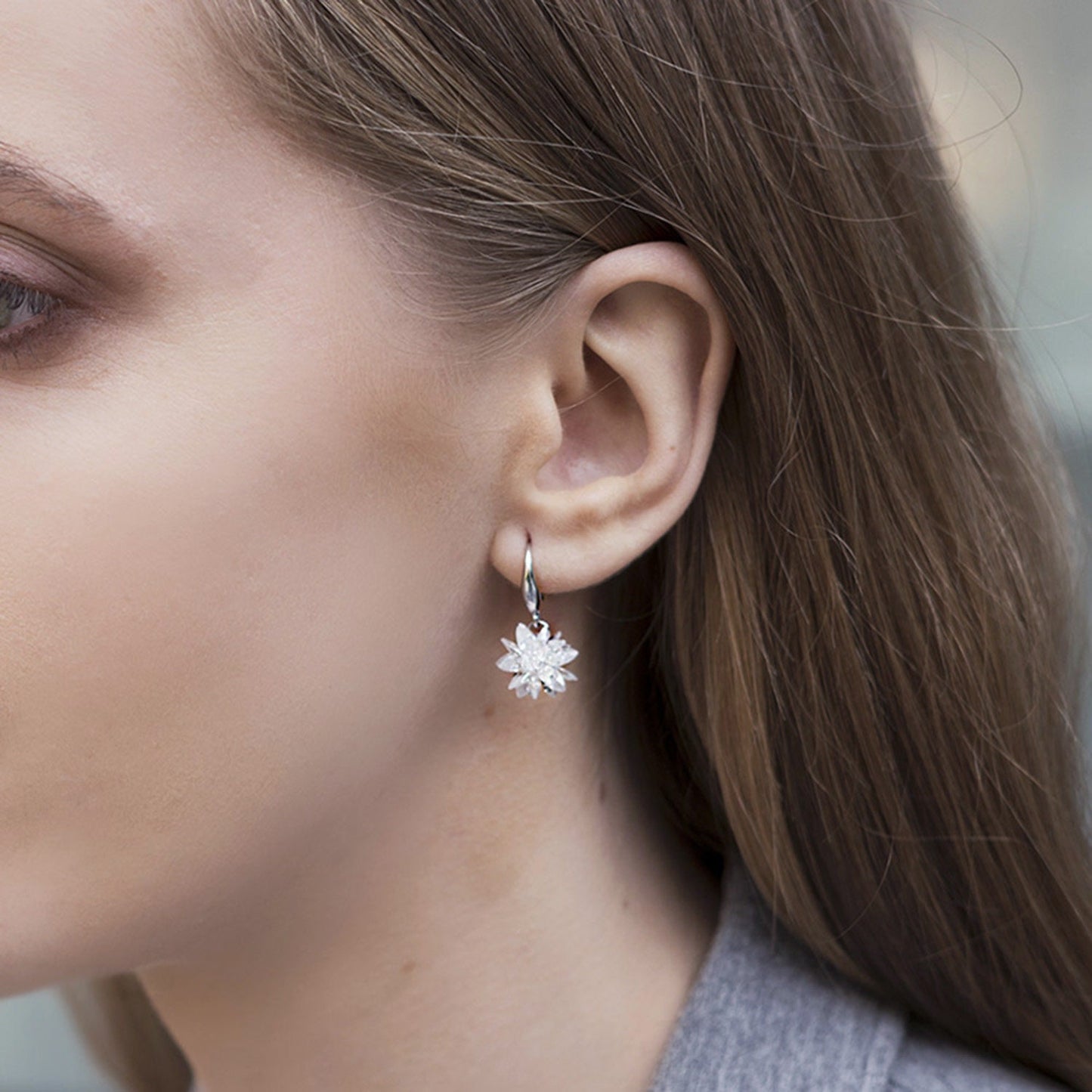 Sterling Silver Crystal Frosty Flower Crystal Drop Earrings